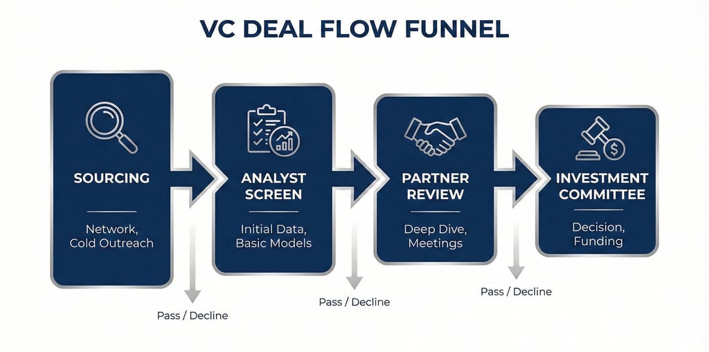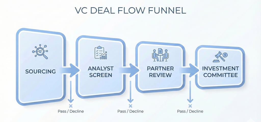 1.2 How a Pitch Deck Moves Through a VC Firm (The Actual 4-Stage Funnel)