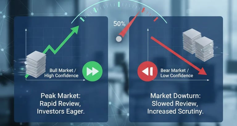 The Equation: Review Speed = (Your Metrics × Macro Sentiment) ÷ VC Portfolio Stress. You can't control your metrics short-term, but you can control when you inject them into the system.